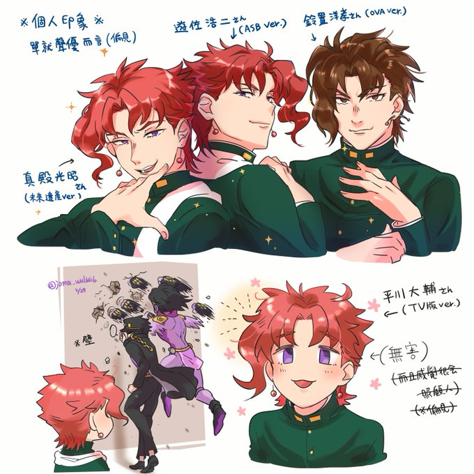 <代表作>「School Days」伊藤 誠役、「ジョジョの奇妙な冒険 スターダストクルセイダース」花京院 典明役など <アニメ「鬼滅の刃」出演回>竈門炭治郎 立志編(1期)26話(役名は「下弦の壱」)、劇場版『無限列車編』、テレビ版無限列車編2~6話 実は花京院典明(ジョジョ第3部)を意識したコーデだったのだそうです。 画像提供:血肉さん 外部リンク 画像を見る歴代の「ジョジョジョセフ・ジョースター (Joseph Joestar) 漫画:ジョジョの奇妙な冒険 出版社:集英社 掲載誌:週刊少年ジャンプ 区分:少年漫画 ジャンル:ファンタジー 作者:荒木飛呂彦 連載:1987年 ジョジョの奇妙な冒険 Part2『戦闘潮流』の主人公。 Part1『ファントムブラッド』の主人公であるジョナサ
